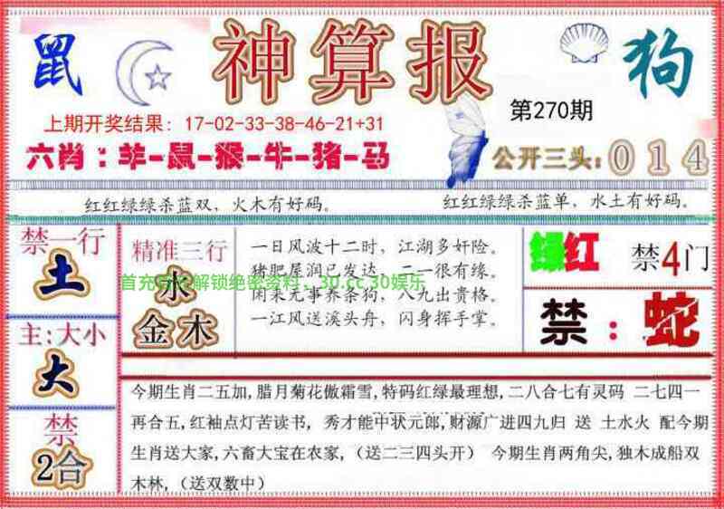 270期:七肖【龙羊兔马鼠鸡蛇】开:羊35准 |