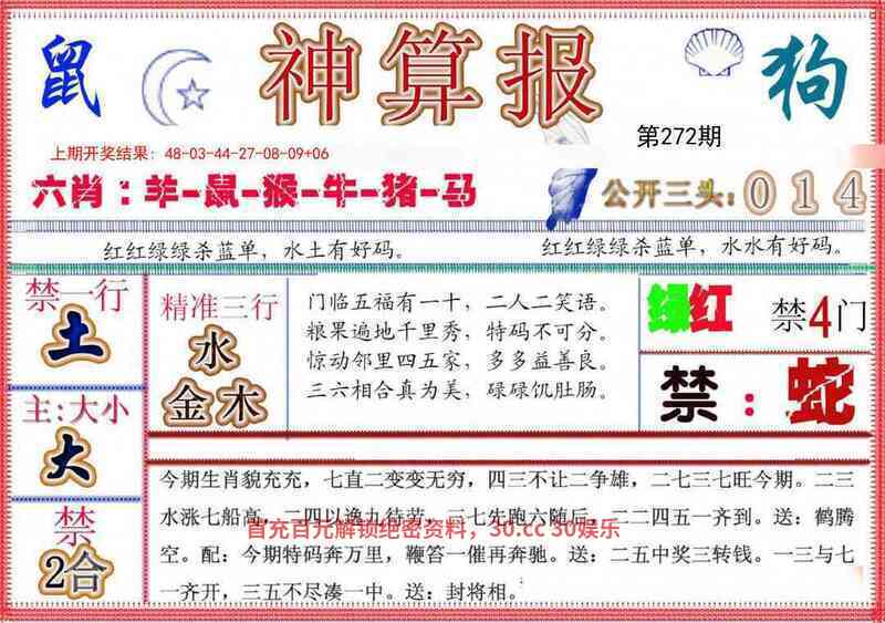 272期:七肖【马猪兔鼠龙狗鸡】开:马36准 |